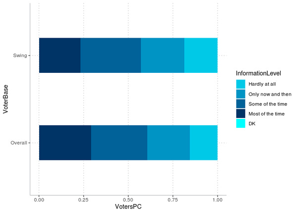 2. Contrary to the image of the low-information swing voter, swing voters say they follow public affairs about the same as the overall population.