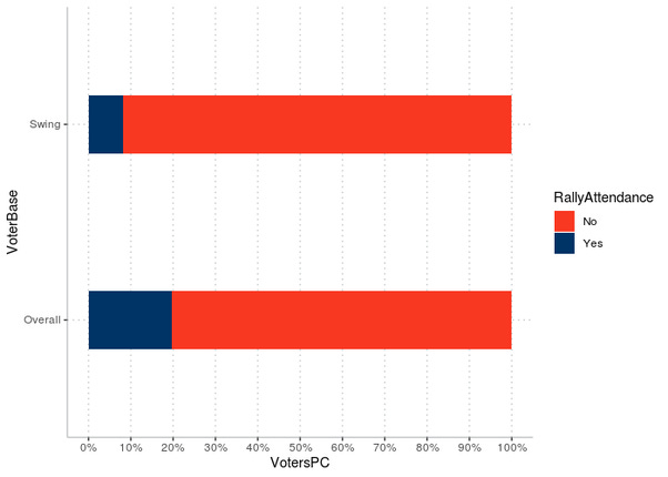 5. People are generally not likely to have attended a political meeting or rally, but swing voters are even less likely: